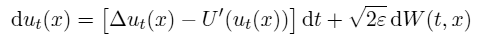where U is a bistable potential and W(t,x) denotes space-time white noise. Detailed results are contained in this paper, and formal computations can be found here.