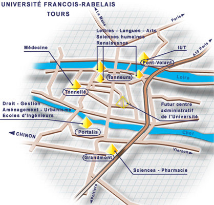 À partir de la gare de Tours, prendre la rue de Bordeaux (semi-piétonne) pour rejoindre la place Jean Jaurès. De là, prendre la ligne 2 direction « CHU Trousseau ». D’autres lignes desservent également la faculté des sciences (3A, 3B, 14) mais sont moins efficaces. Depuis la gare de Saint-Pierre-des-Corps, prendre la ligne 16 direction « Joué les Tours, Blotterie ». Dans tous les cas, descendre à l’arrêt « Faculté de Grandmont » situé sur l’avenue Monge. Pour les horaires et les lignes, consultez le site de Fil Bleu.