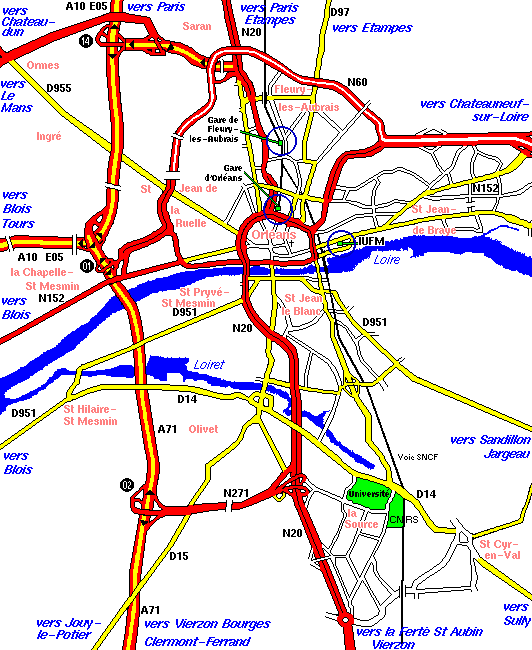 Les grands axes sont la nationale N20 ou les autoroutes A71 et A10. Suivre les panneaux Olivet, Orléans La Source et Parc Floral jusqu’à l’université, et de là suivre les panneaux Sciences, l’IDP est à côté du bâtiment vert des Sciences sur la Route de Chartres. Pour les informations exactes voir Mappy ou Michelin ou suivre le plan.