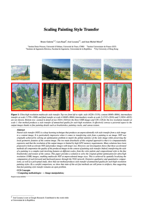 B. Galerne, L. Raad, J. Lezama, J.-M. Morel. Scaling Painting Style Transfer. In EGSR 2024 (Computer Graphics Forum). (HAL preprint) |